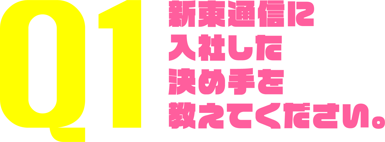 前職の先輩が先に新東通信へ⼊社しており、その先輩からお声がかかり⼊社しました。当初は前職のスキルを活かして住宅チームを担当していましたが、他のいろんな業種のクライアントとも仕事をしてみたかったので、新東通信で働けてよかったです(言わされてないです)。元々学⽣時代はデザインを勉強していましたが、ものづくりをする上でよりお客さんに近い距離で仕事をしていきたいと考え、デザイナーではなく営業を選びました。つまり、陰キャでも営業はできます(笑)。